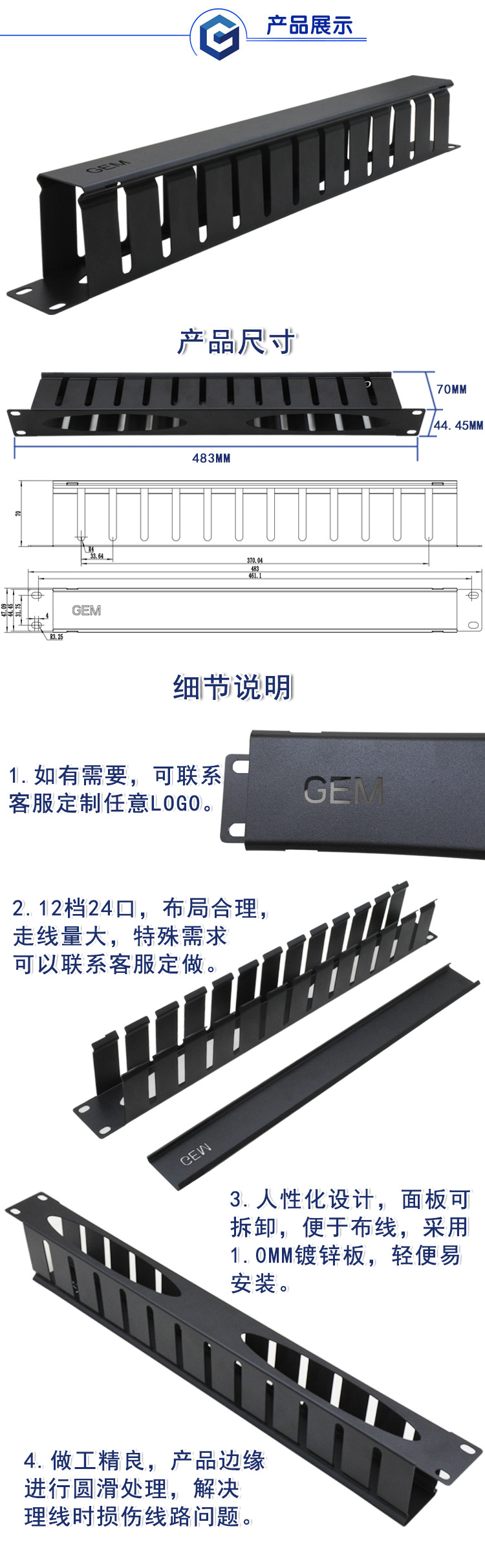 1.12檔24口,布局合理,加大空間設計,走線量大,不會造成內部線路擠成一團,方便后期整理線路,如有特殊需求可以聯系客服定做。